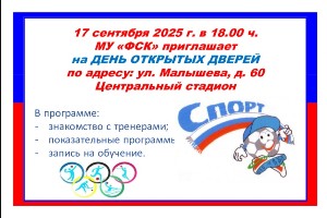 05.08.2025 Управление по физической культуре и спорту администрации Кыштымского городского округа с совместно с Центром тестирования Всероссийского физкультурно-спортивного комплекса ГТО г. Кыштыма приглашает 8 августа в 17:30 ч. на торжественное мероприятие, посвященное Дню физкультурника, место проведения Городской парк им.А.С. Пушкина (подробнее)